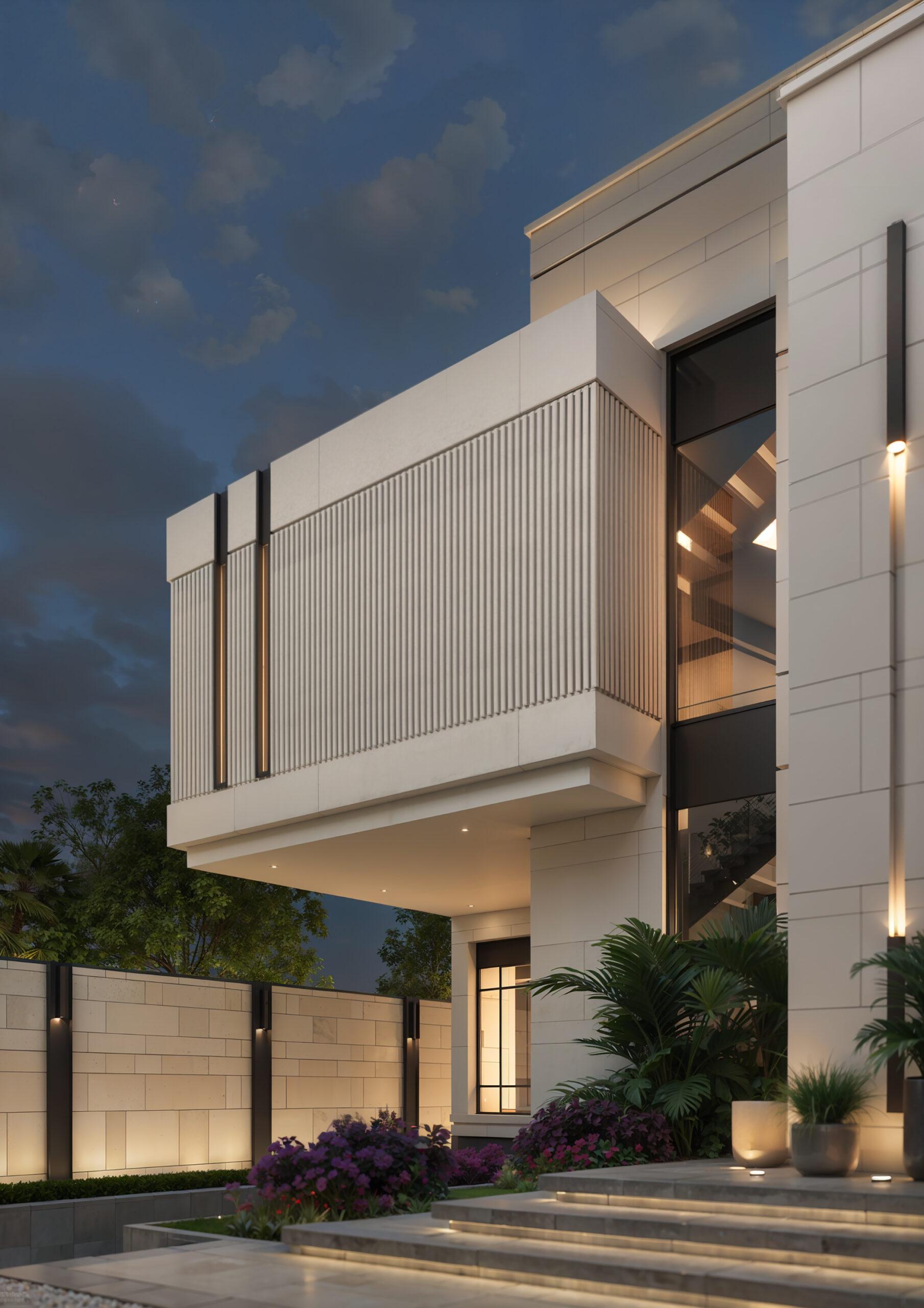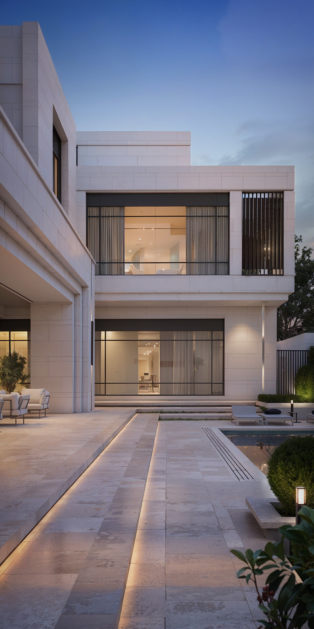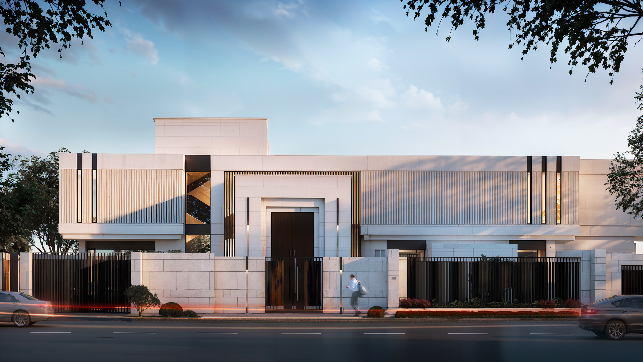 This private villa is an architectural ode to cherished moments, blending classic elegance with contemporary design. Each space is meticulously crafted to elevate human experiences, combining light and texture for comfort and luxury. Seamlessly connected with nature, the villa dissolves indoor-outdoor boundaries. Family bonds are central, with open areas for togetherness and private retreats for reflection. The design merges opulence and innovation, integrating modern comforts for a sophisticated lifestyle. This architectural masterpiece harmonizes tradition and future, transforming living into a symphony of emotions and aesthetics.